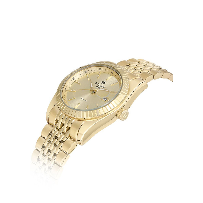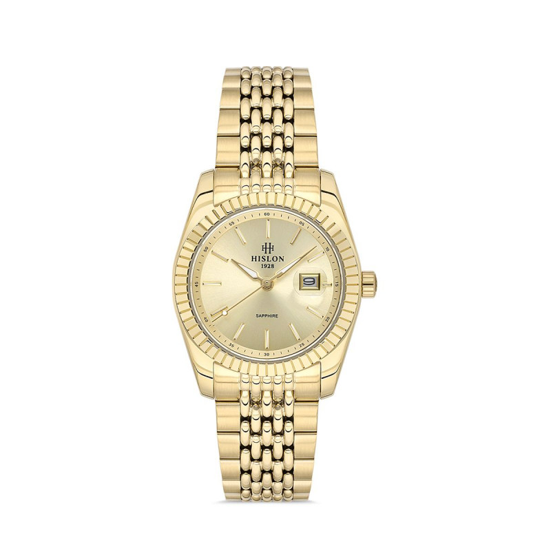 Hislon Women's Classic Queen QL145G-08SG, Kadın Kol Saati Çalışma Şekli: Quartz, Makine Modeli: Japon Miyota 2115, Kasa Materyali: 316L Paslanmaz Çelik, Kasa Şekli: Yuvarlak, Kasa Çapı: 31 mm, Kasa Kalınlığı: 9.9 mm, Kasa Rengi: Gold, Kadran Rengi: Gold, Cam Cinsi: Safir Kaplama, Cam Şekli: Düz, Kordon Tipi: 316L Paslanmaz Çelik, Kordon Rengi: Gold, Kordon Kilidi: Kelebek Klips, Kordon Genişliği: 17 mm, Su Geçirmezlik: 3 ATM, Çift Zaman Dilimi: Yok, Kronometre: Yok, 12/24 Göstergesi: Yok, Takvim: Tarih, Alarm: Yok